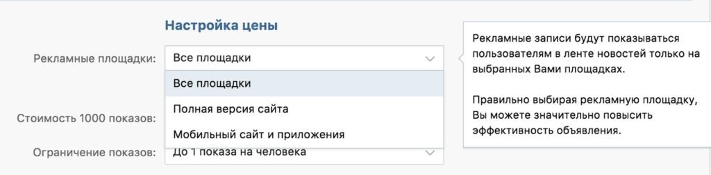 Если вы укажите цену из рекомендуемого диапазона, то ваше созданное объявление сможет охватить около 100% от всей выбранной аудитории. При выборе значения на 20−30% ниже от указанного диапазона, объявление будет показано меньшему количеству пользователей ВКонтакте: оно будет зависеть от активности конкурентов на текущий момент.